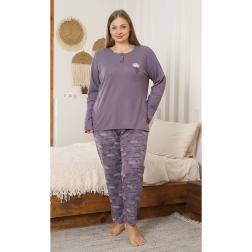 4571 VİSKON DÜĞMELLİ UZUN KOL BATTAL BAYAN PİJAMA TAKIM