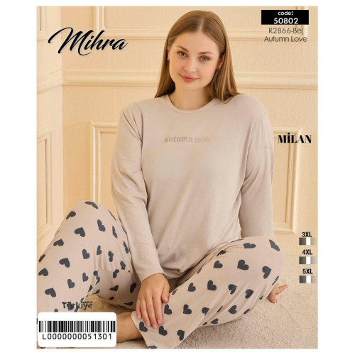 MİHRA 50802 MİLAN UZUN KOL BAYAN BATTAL PİJAMA TAKIM