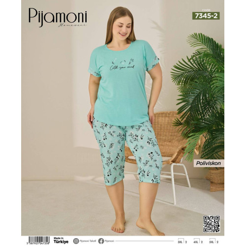 PİJAMONİ 7345 POLİVİSKON BATTAL BAYAN KAPRİ TAKIM