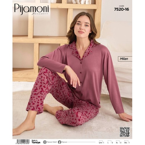 PİJAMONİ 7520 MİLAN DÜĞMELİ BAYAN PİJAMA TAKIM